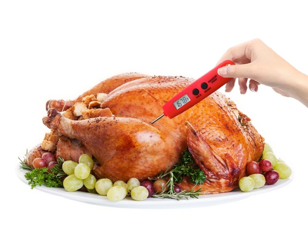 The ultra fast sensor technology pops right to the temperature range in a couple of seconds, stabilizing on the final temperature within just a few more seconds. Then press the ‘hold’ button and withdraw the thermometer to safely read the temperature without having to hold the thermometer in the meat or food being measured!